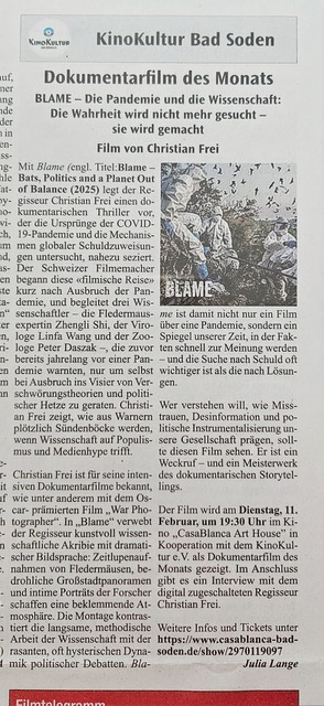 Als sie vor Pandemien in der Zukunft warnten, wurden sie nicht gehört. Als die Welt von der COVID-19-Pandemie heimgesucht wird, müssen dieselben Wissenschaftler nicht nur gegen das Virus kämpfen, sondern auch gegen eine Welle von Fehlinformationen, Verschwörungstheorien und politischer Schuldzuweisung, die drohen, die Wahrheit zu überlagern. Dies ist ihre Geschichte. Nach Jahren des Eintauchens in entlegenen Fledermaushöhlen geraten drei Forschende ins grelle Licht der Politik und schwerer Anschuldigungen. Die überhörten Warner müssen sich rechtfertigen. BLAME ist eine bildgewaltige Filmreise über die Rolle der Wissenschaft in zunehmend dunkleren Zeiten. Sachlich und unaufgeregt zeigt der Film, wie die Welt durch das gezielte Schüren und Bewirtschaften von Ängsten und faktenfreien Mythen aus den Fugen geriet.